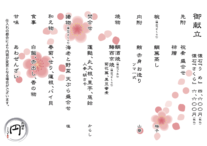新)月曜日、火曜日(祝日でもお休みとなります)なお、お弁当類は従来通り水曜~日曜営業となります。